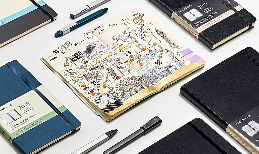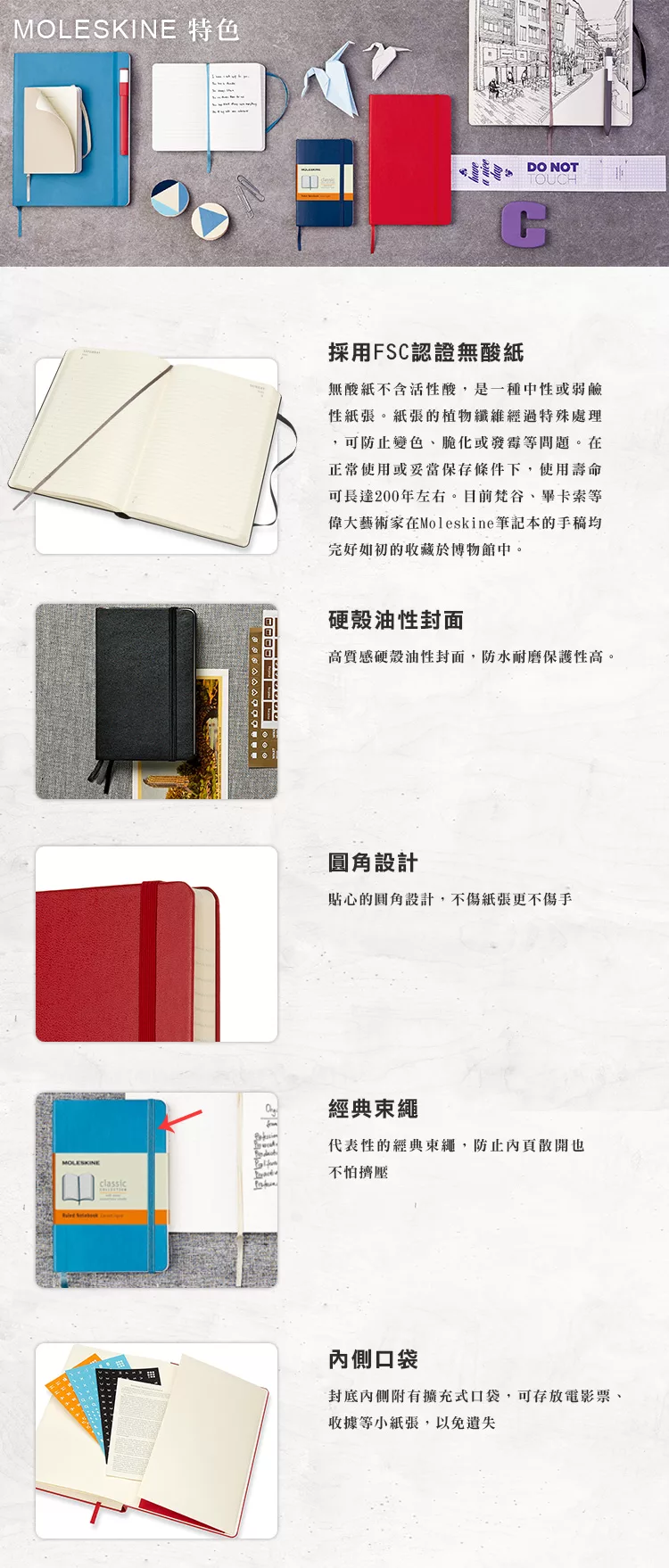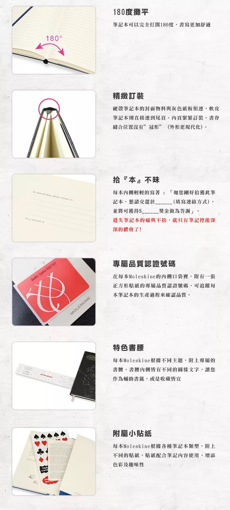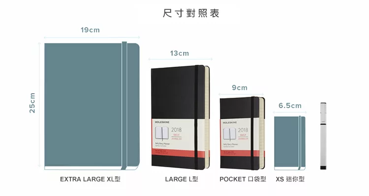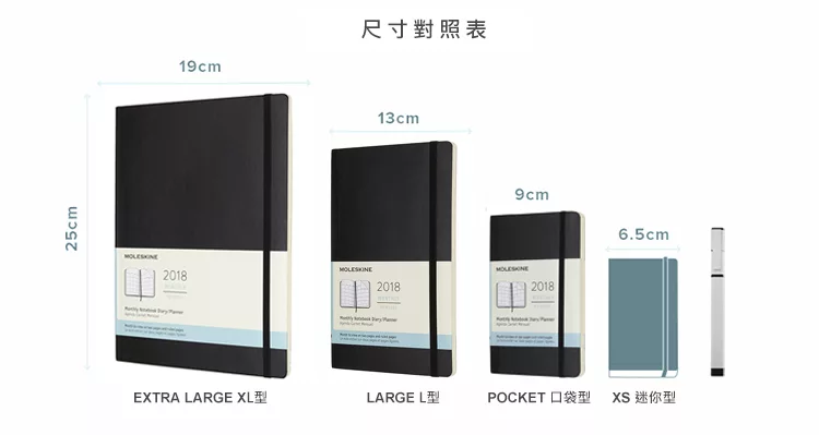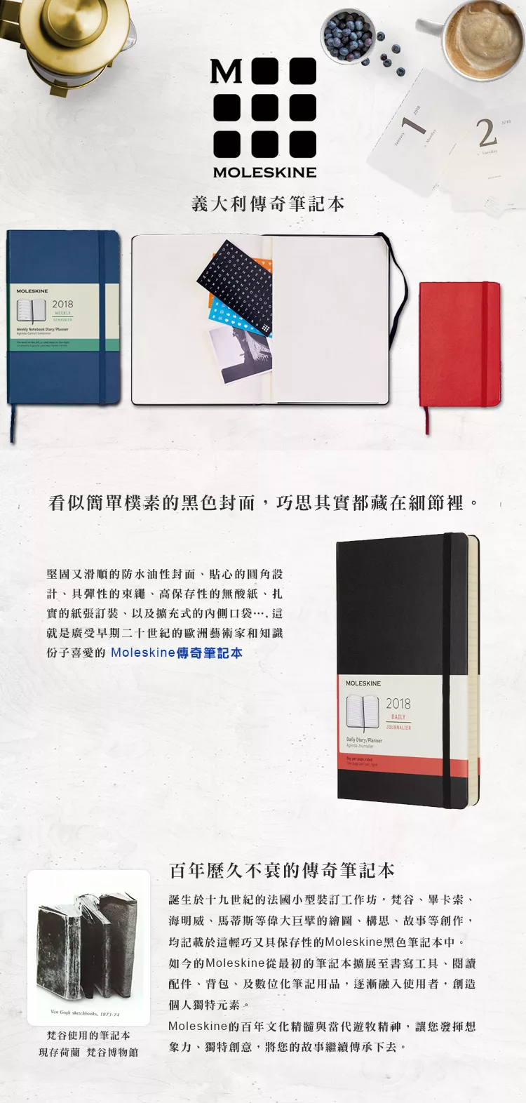 Moleskine 2018年月間手帳(軟皮),以每月兩頁月間格加上兩頁的橫線筆記的編排模式,格子空間大,方便規劃每月任務及代辦事項,提高工作效率。